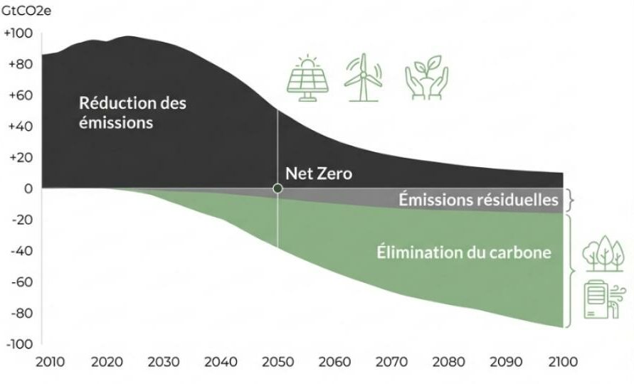 Au-delà de la réduction des flux, l’Élimination du Carbone permet de traiter le “stock” accumulé historiquement par l’activité humaine.